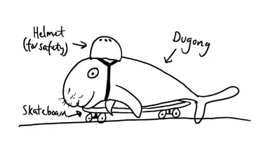 Matt: Sometimes I still wear my backpack on my front, only now I hop my way to work. Quarantine was VERY long in Melbourne and I had to do what I could to stay entertained. In my backpack are the same things now as I when I was a kid. A funny book, a pad and pen to write down jokes, ideas for stories, and draw pictures of unlikely animals on skateboards. Here’s one I prepared earlier: